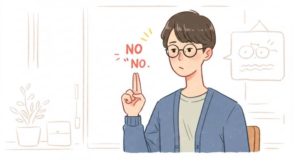 気が進まない誘いや頼まれごとに対して、無理のない範囲で断る練習をする。「少し考えさせてください」と一旦保留するのも有効。