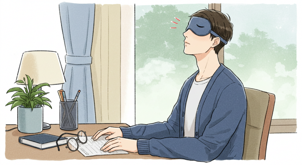 特に刺激が多いと感じた後、5分〜10分、静かな場所で目を閉じる。アイマスクやノイズキャンセリングイヤホンを使うのも効果的。過剰な情報から脳をシャットダウンさせます。
