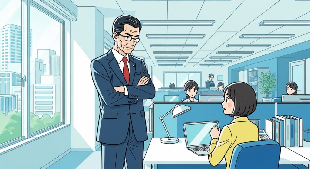 「ちひろさん、この書類、また間違ってるよ。もう少し注意深く仕事してもらえる?」